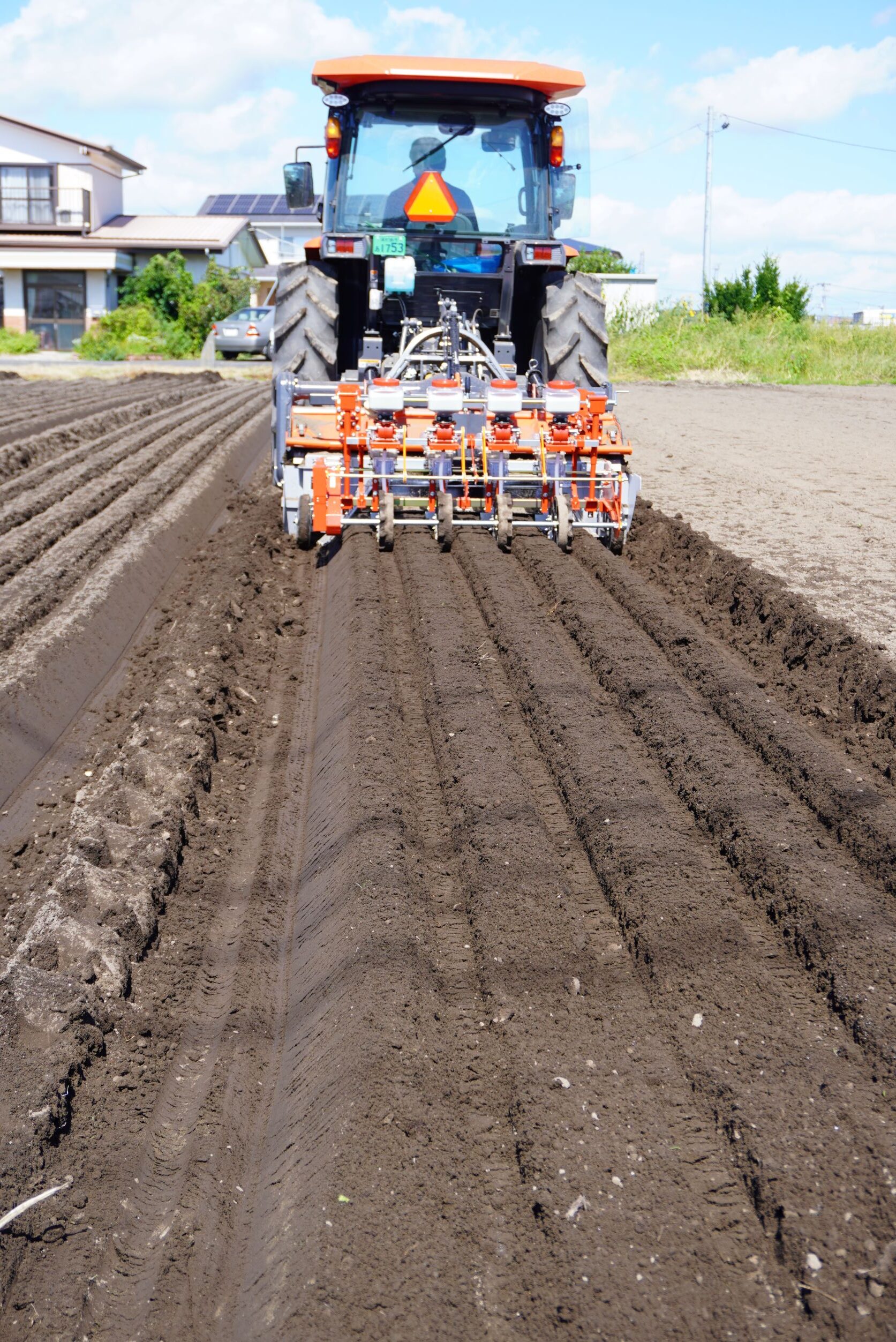 同社の熱海修市常務は9月26日、導入した播種機を使い、畝がまっすぐになるよう慎重に播種作業を進めました。