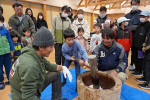参加した子どもは「きねが重くて大変だったけど、うまく餅つきができて楽しかった。雑煮とあんこ餅もとてもおいしかった」と笑顔で話しました。