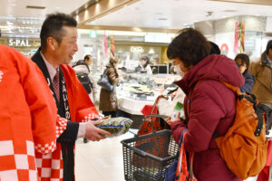 JAやもとほうれん草組合は1月20日、JR仙台駅エスパル仙台店エキチカキッチン内で、6年ぶりに販売促進会を開きました。