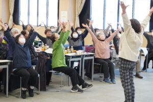約50人が参加し、大正琴サークルによる昭和歌謡曲の演奏や、笑いヨガインストラクターの高橋聖子さんを講師に「笑いヨガ」を行い、免疫力を高める体操をしました。