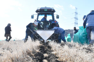 石巻市の農事組合法人たてファーム・和は、圃場の排水性を改善するため、もみ殻を混入した暗渠設備を施工しています。